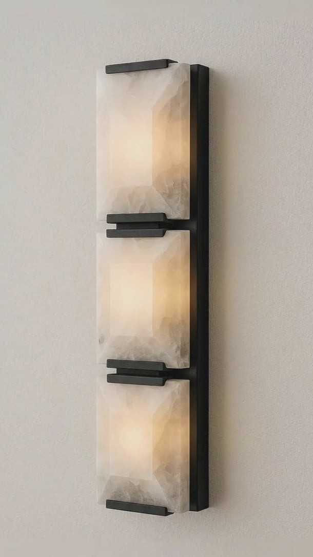 Iluminação difusa através de três cilindros de cristal fosco proporciona claridade uniforme sem ofuscamento direto. Estrutura vertical modular otimiza espaços estreitos criando presença marcante na parede. Compatível com três lâmpadas E14 LED bivolt tipo mini bulbo ou vela. Perfeita para iluminação de espelhos e ambientes que exigem claridade funcional elegante. Conheça também nossas luminárias decorativas.