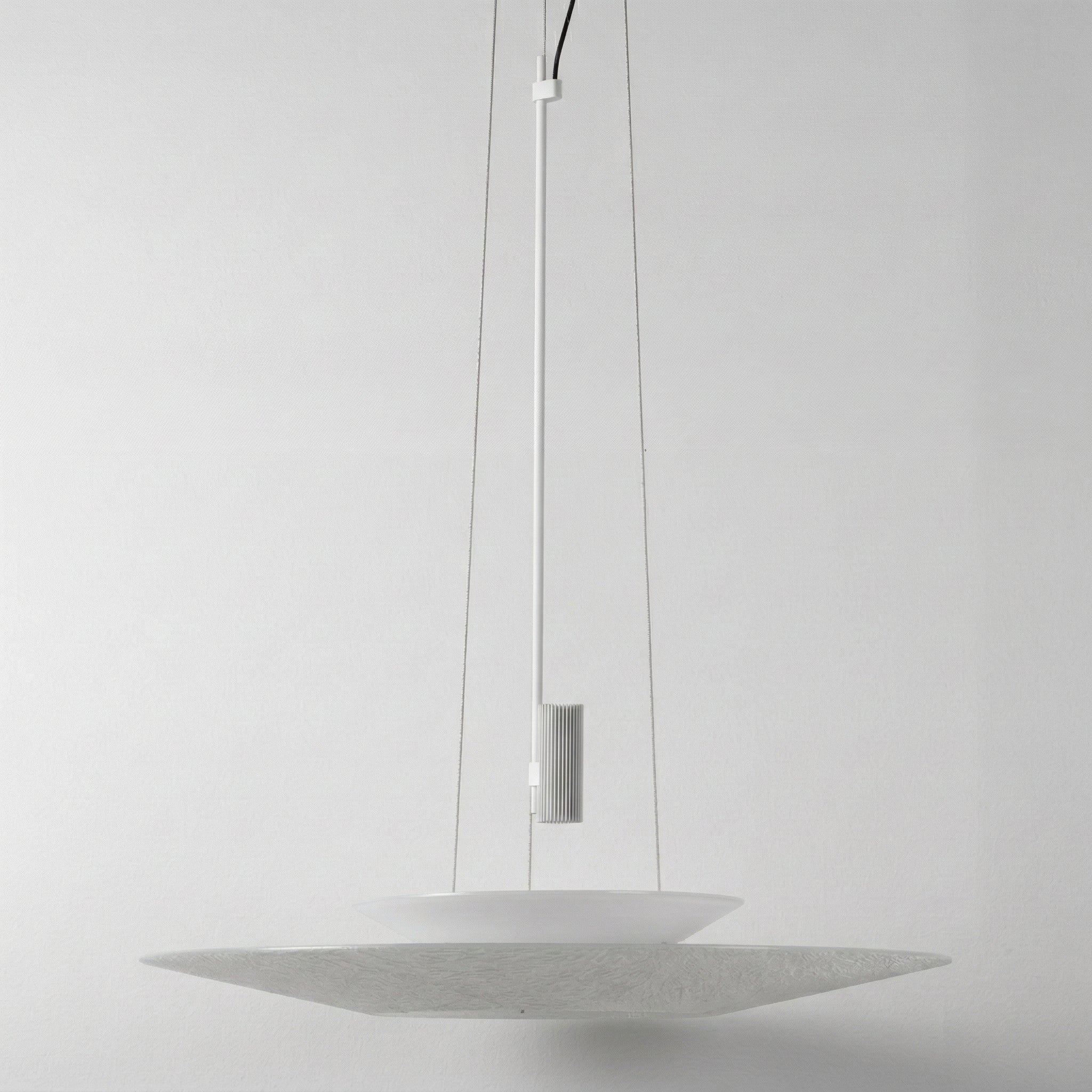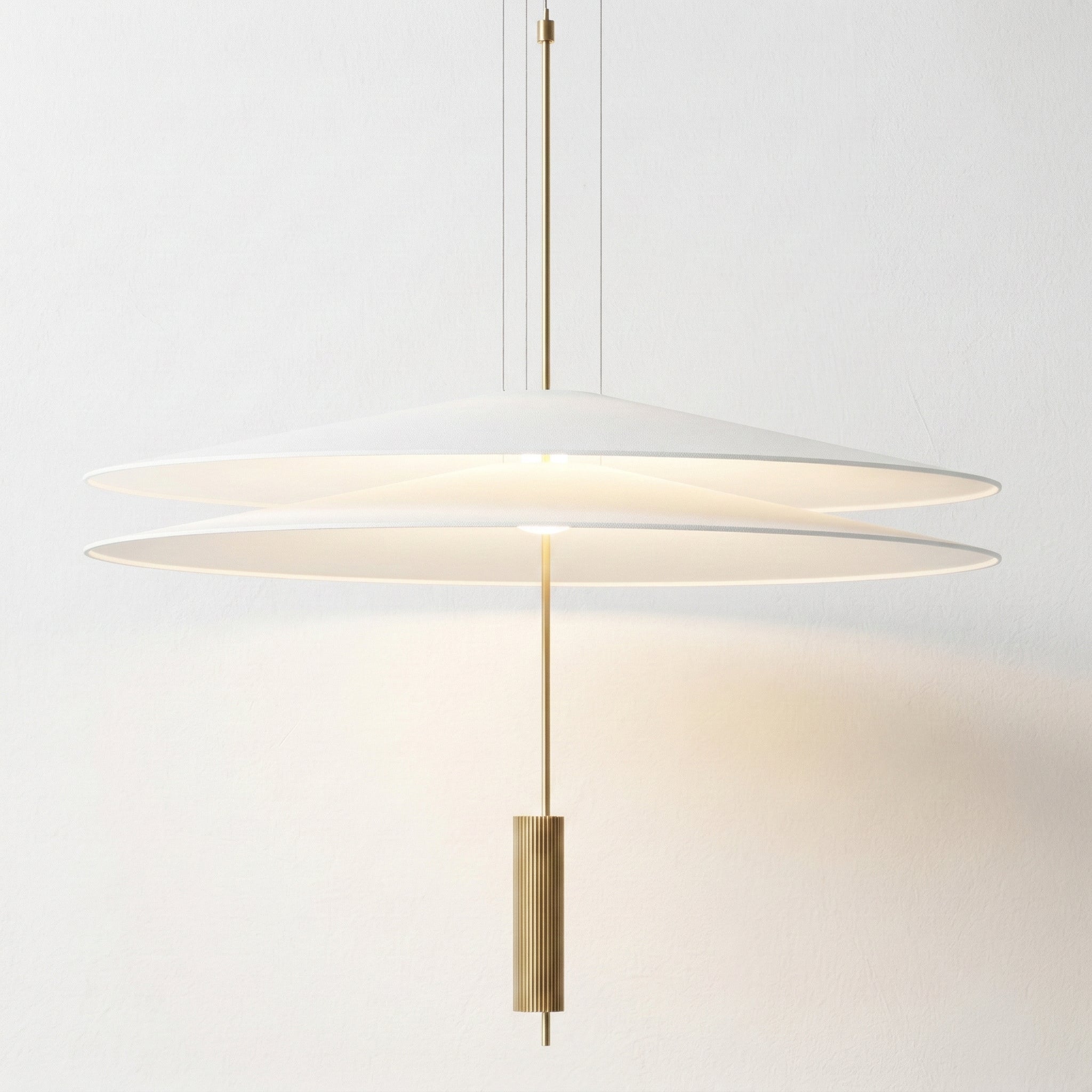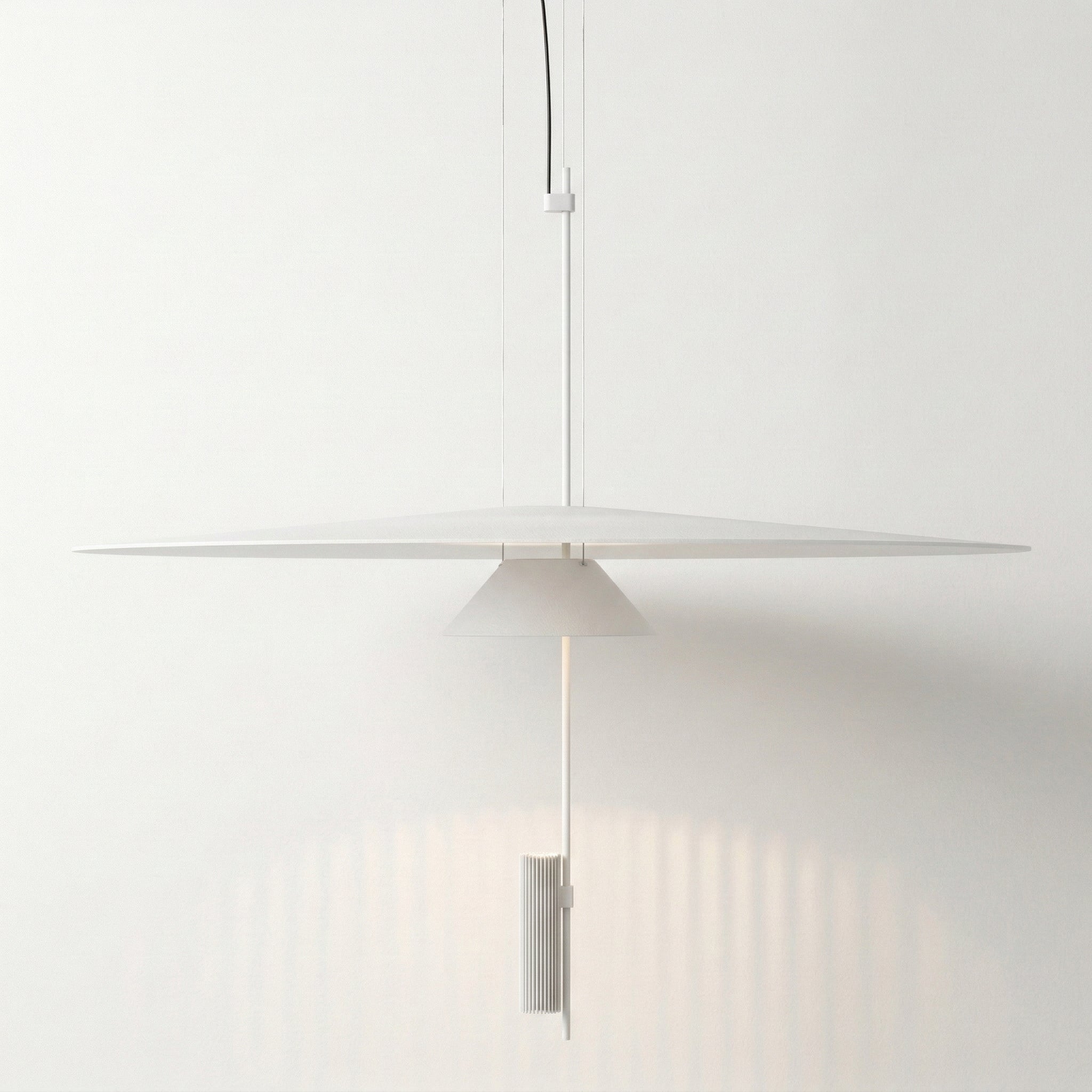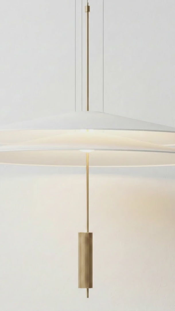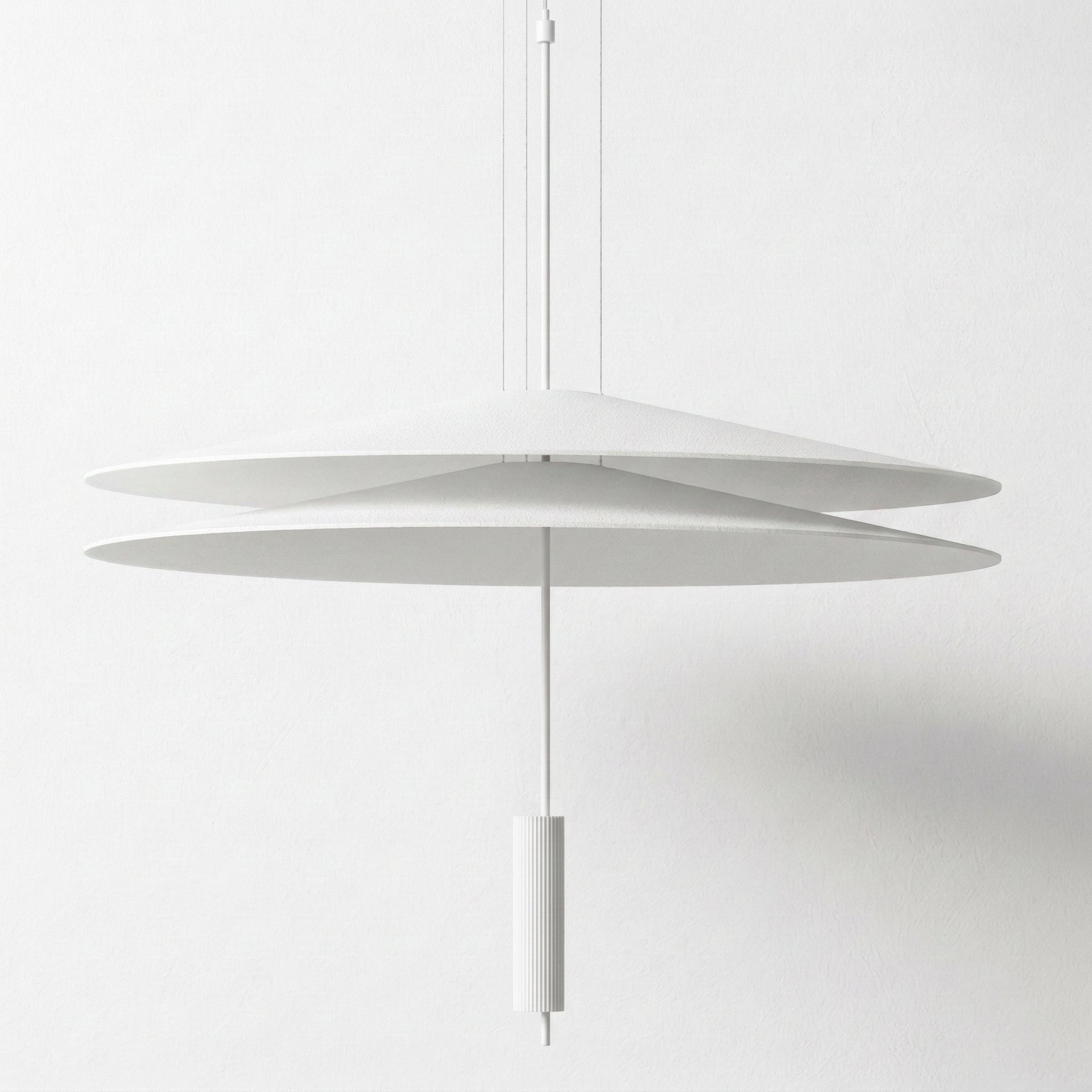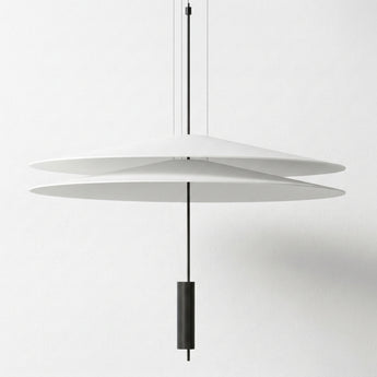 Pendente LED integrado Flamingo com design exclusivo de duas camadas flutuantes que transforma sua mesa de jantar em ponto focal elegante e sofisticado. Estrutura ultraplana em alumínio branco com detalhe central contrastante que cria uma composição visual única e diferenciada. Disponível em dois diâmetros (50 ou 68cm) com altura ajustável até 200cm. Explore nossa coleção de pendentes modernos.