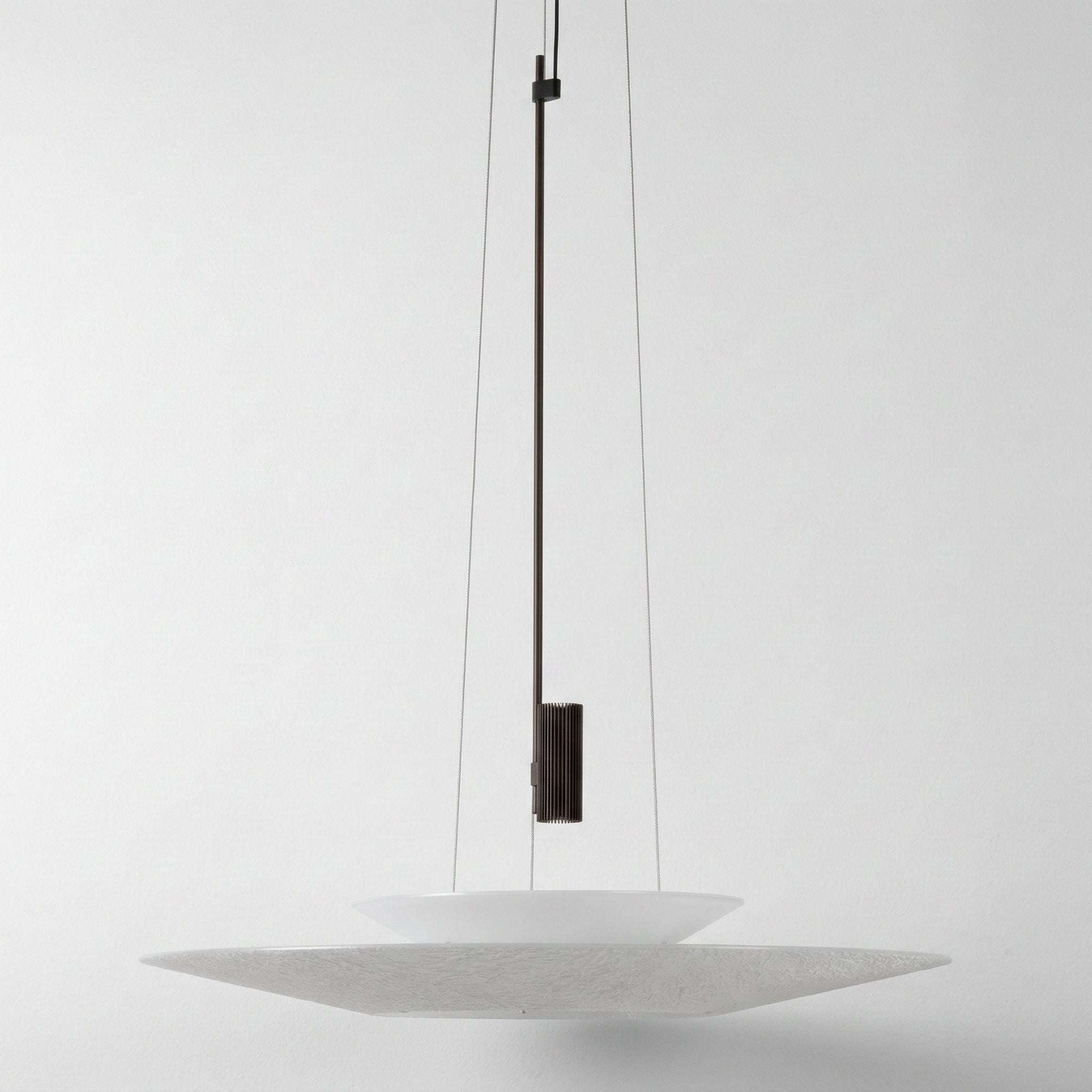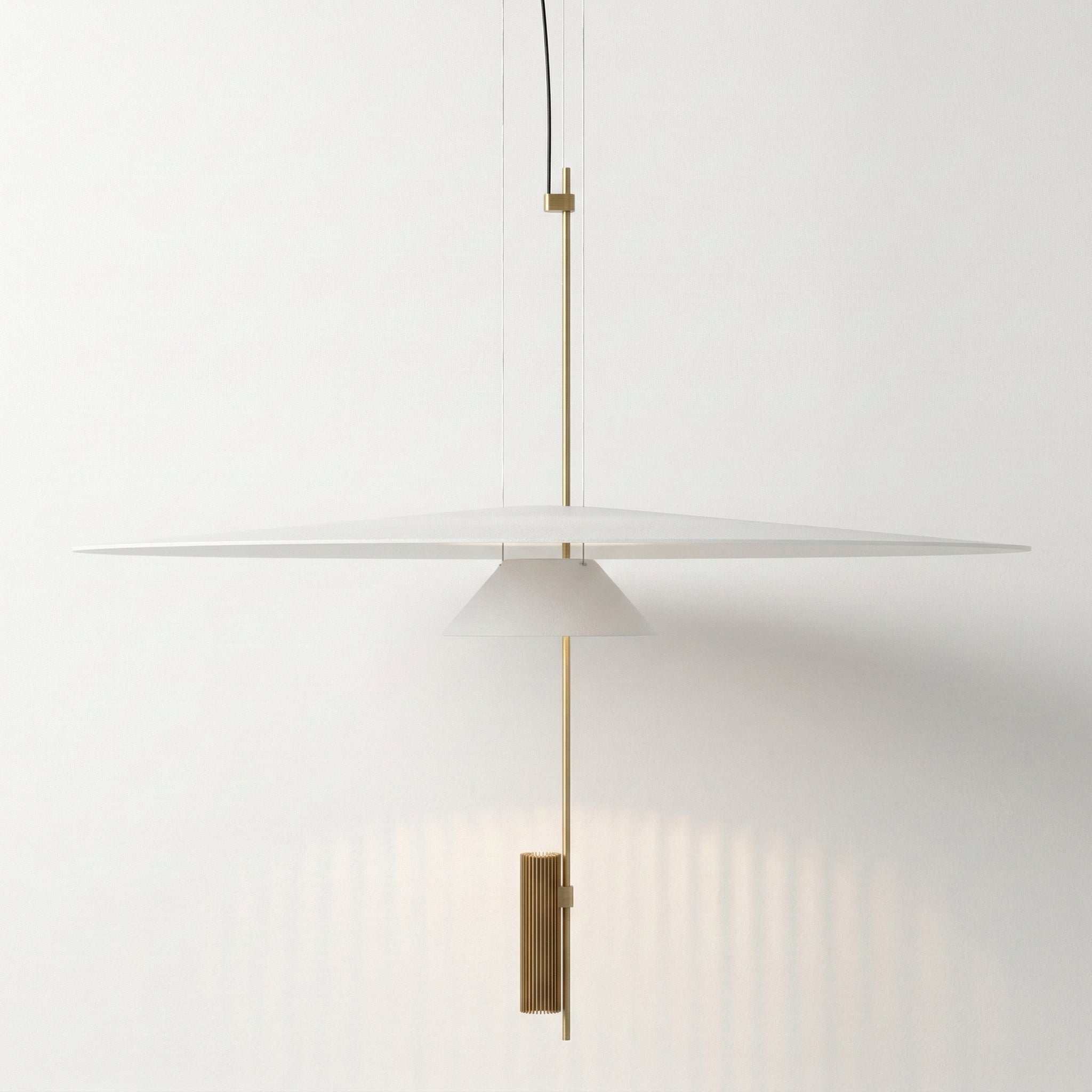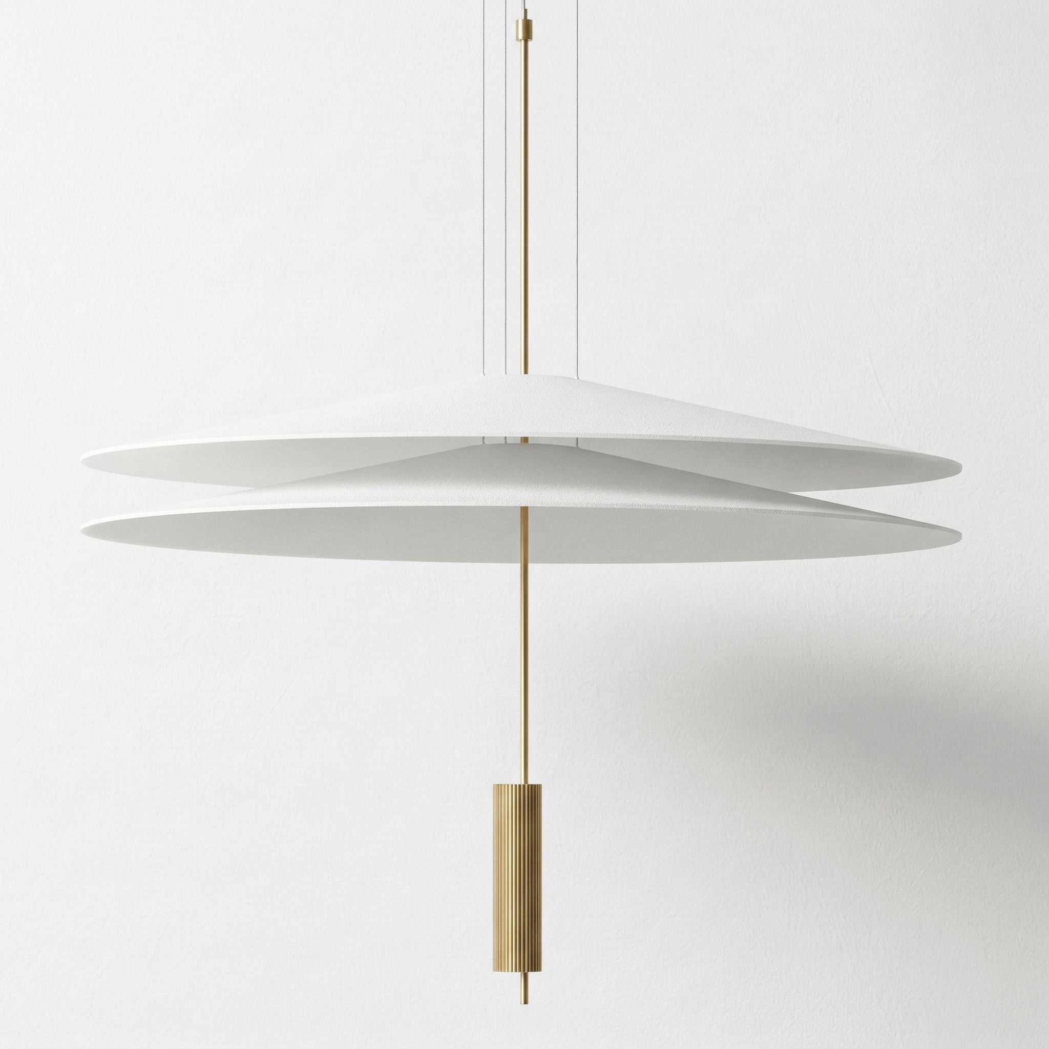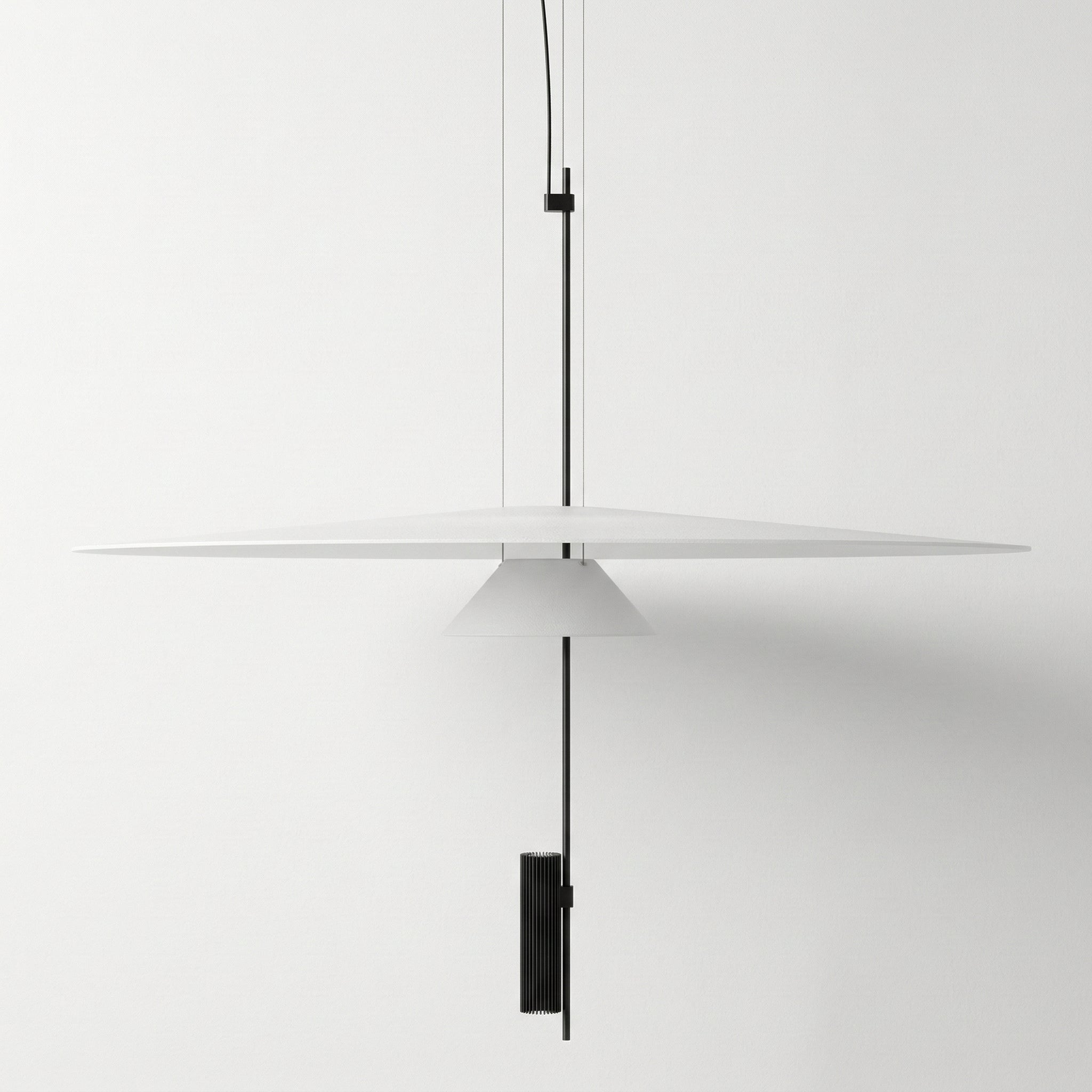 Pendente LED integrado Flamingo com design exclusivo de duas camadas flutuantes que transforma sua mesa de jantar em ponto focal elegante e sofisticado. Estrutura ultraplana em alumínio branco com detalhe central contrastante que cria uma composição visual única e diferenciada. Disponível em dois diâmetros (50 ou 68cm) com altura ajustável até 200cm. Explore nossa coleção de pendentes modernos.