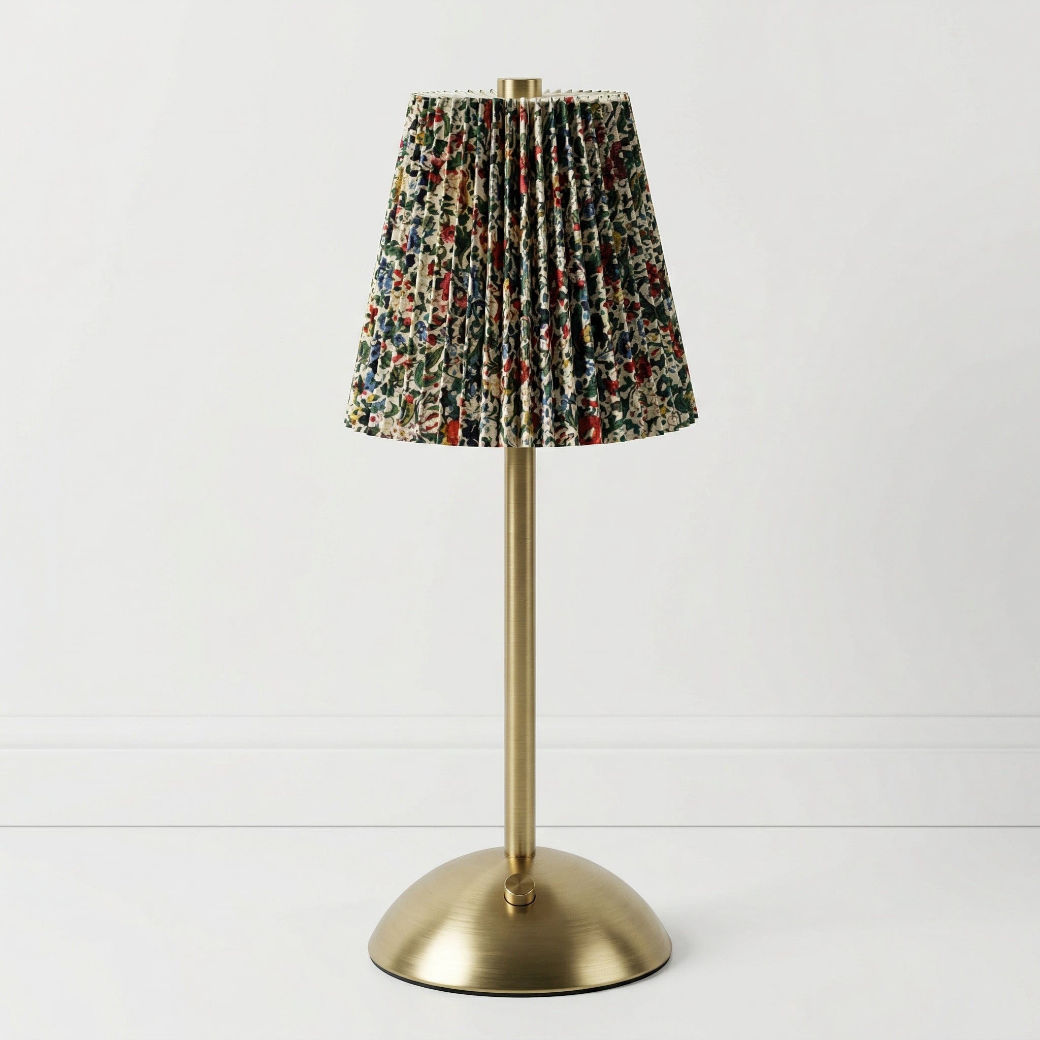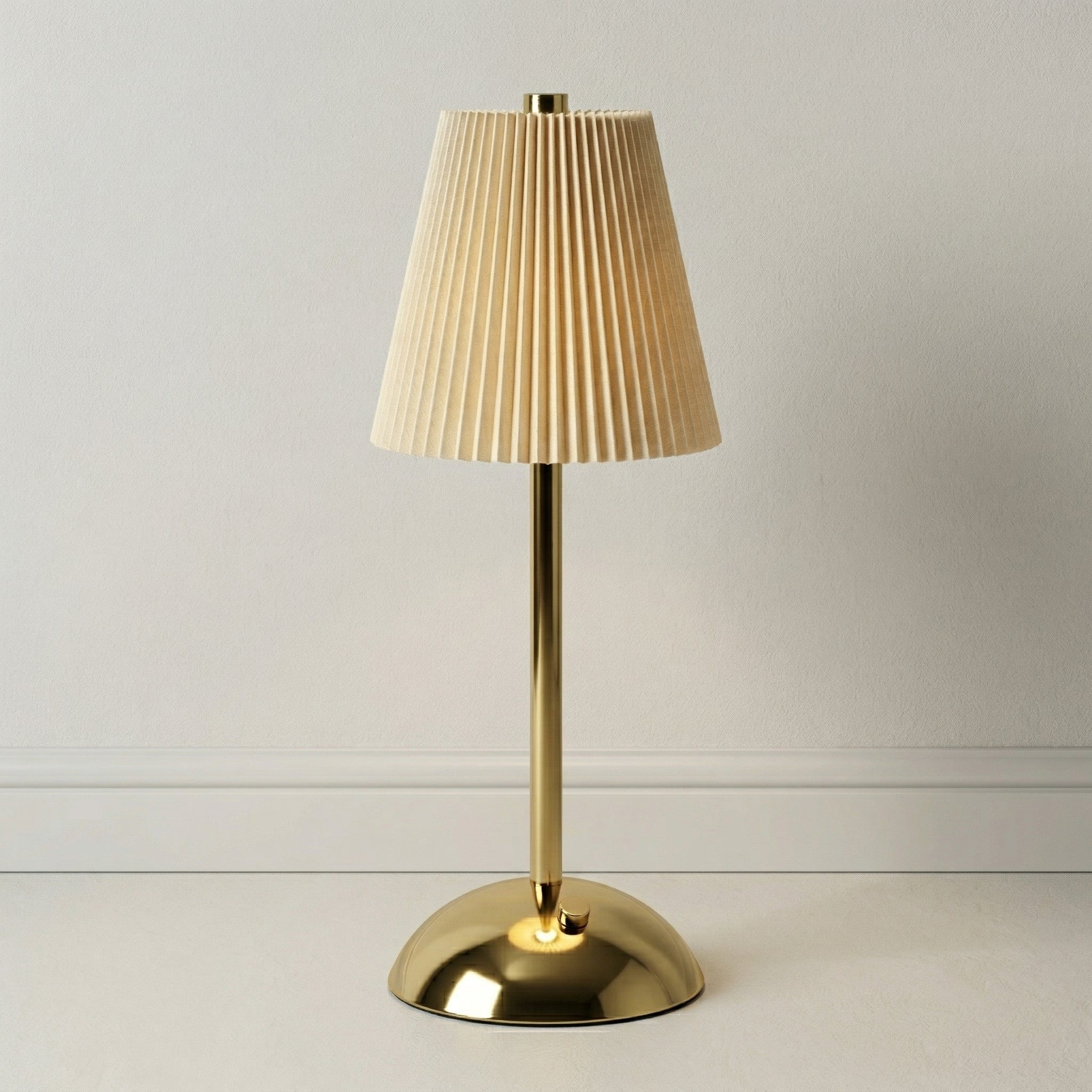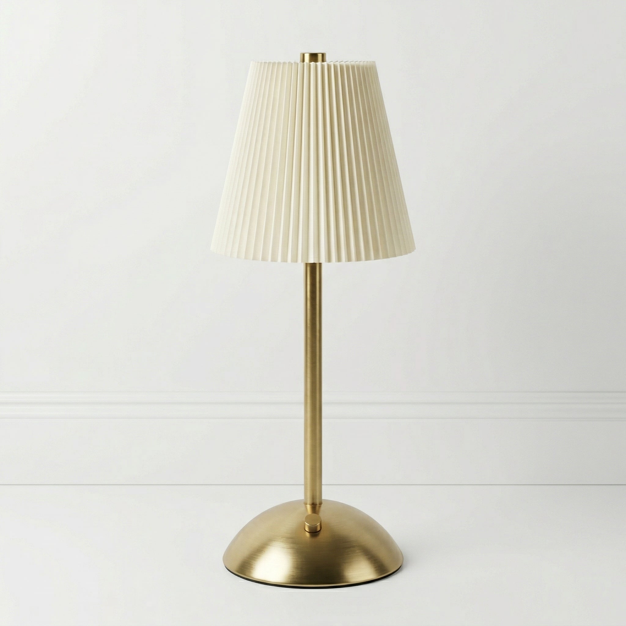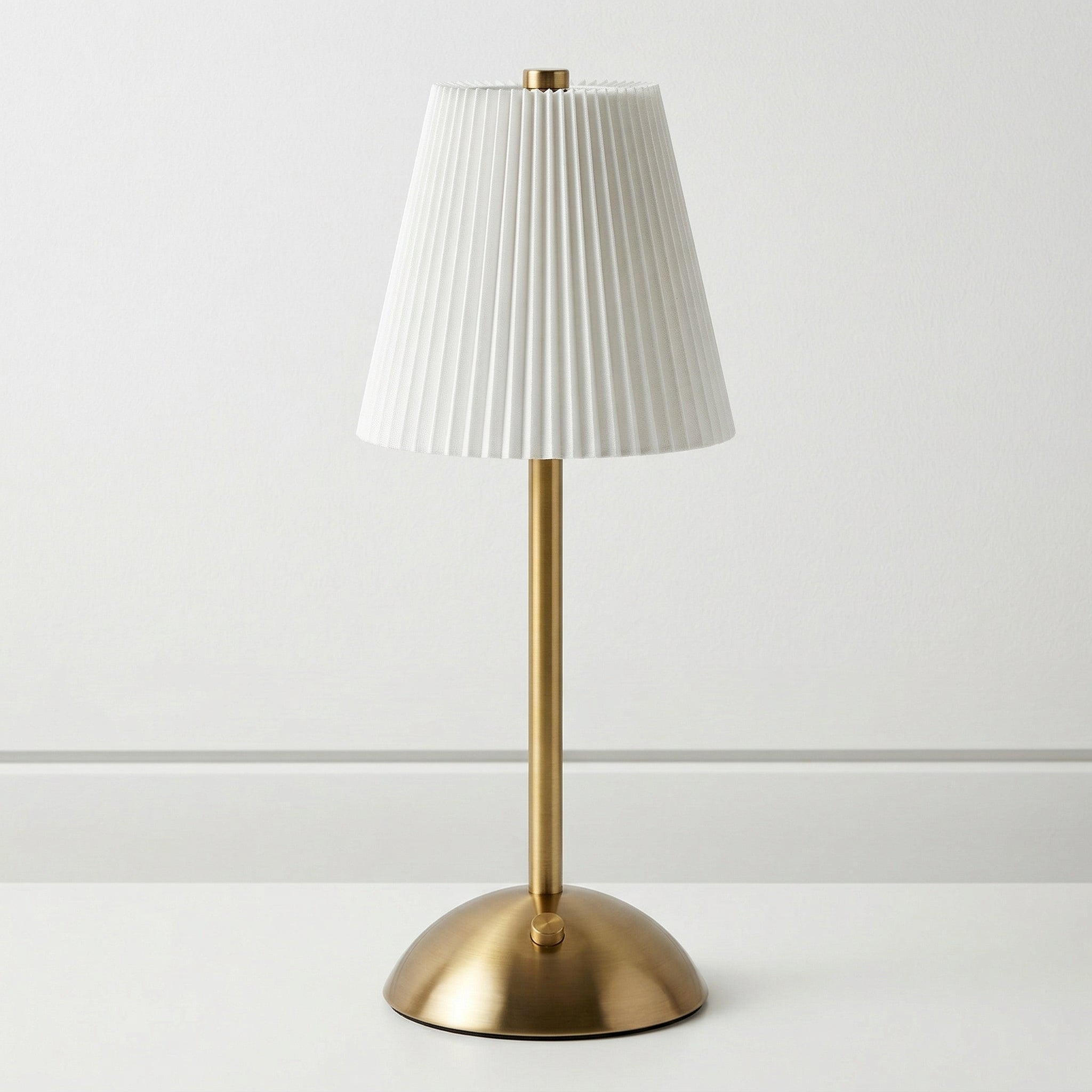 Com bateria recarregável de lítio e tensão 5V via cabo, esta luminária sem fio vai onde o ambiente pede — cabeceira, mesa de jantar, escrivaninha ou varanda. O LED de baixo consumo e a cúpula de tecido plissada difundem uma luz quente e intimista, perfeita para criar atmosfera sem depender de tomadas. Conheça nossas luminárias recarregáveis.