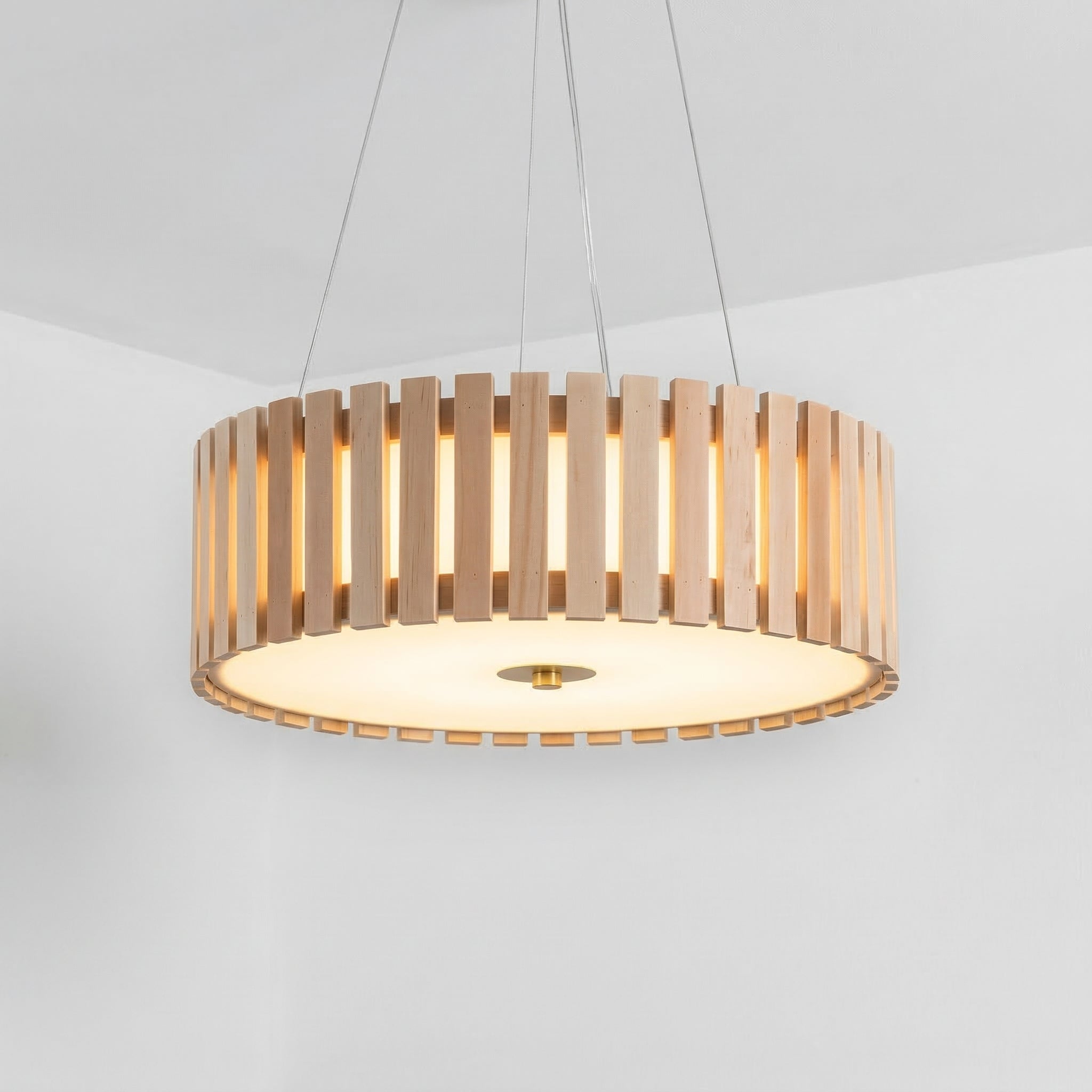 O pendente tambor nórdico em madeira natural é pura poesia para quem ama design orgânico. Suas ripas de carvalho claro formam um cilindro que filtra a luz de forma encantadora, criando sombras suaves e aconchego incomparável. Veja nossa coleção de luminárias rústicas.